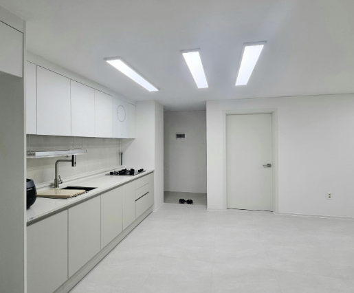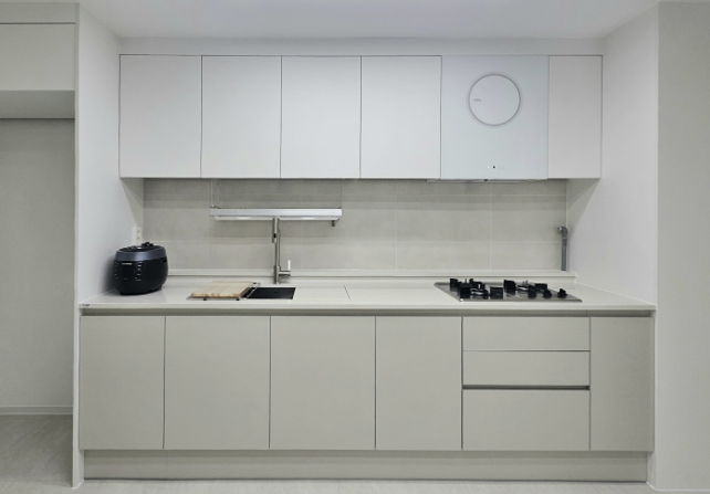 거실과 주방 동선을 바꾸고, 오래된 마감재는 심플한 톤으로 교체했죠. 2주 만에, 좁던 공간이 훨씬 넓고 깔끔하게 바뀌었습니다.