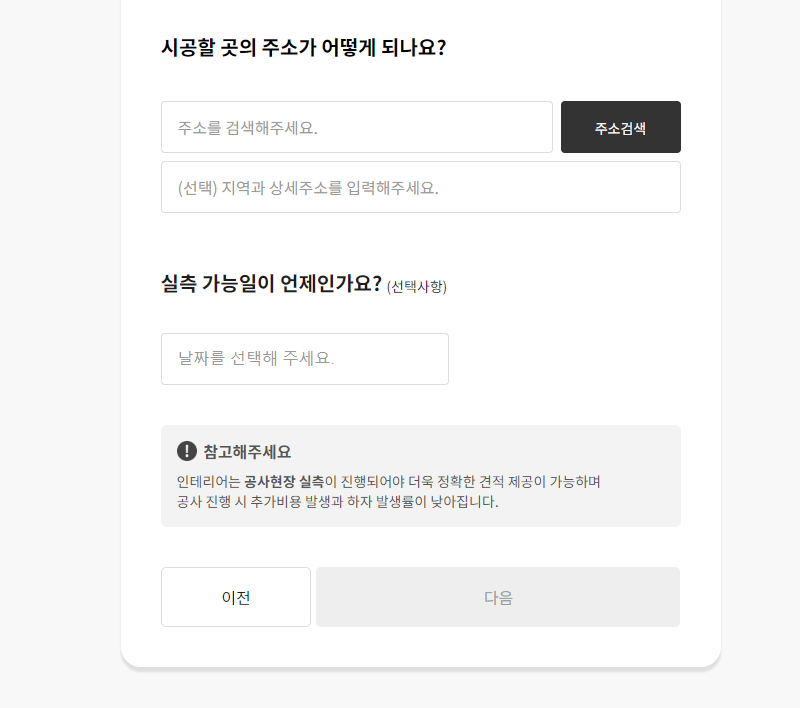 ✔️ 예산 선택 - 시공할 주소, 날짜 작성!