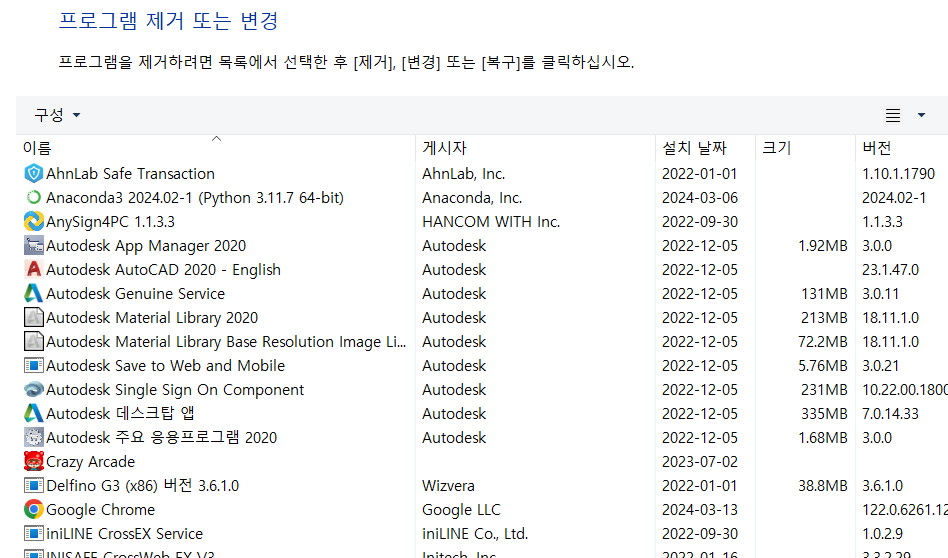 이러한 화면이 나오는데 보고 필요없는 앱이나 프로그램은 삭제하기!