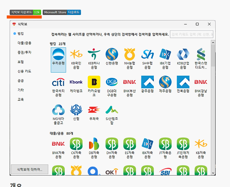 이 식탁보 프로그램 깔면 은행 업무볼때 깔 필요없어서 좋아요!