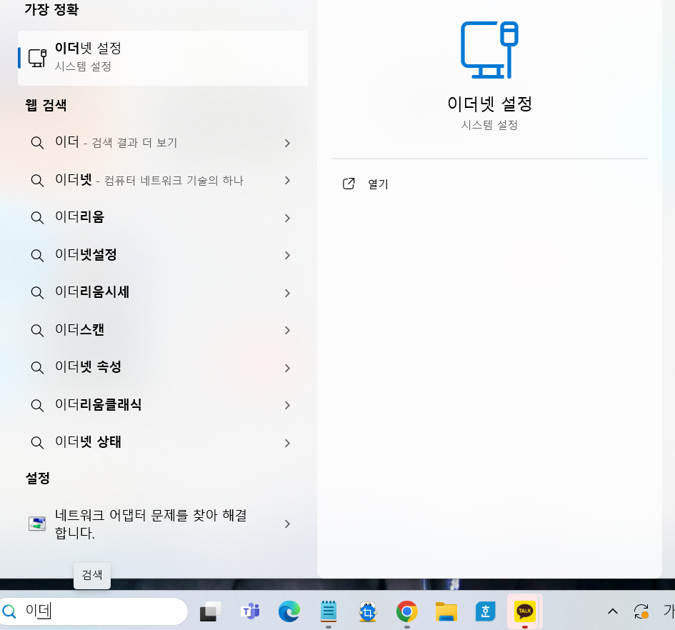 컴퓨터 검색에서 이더넷 설정 검색후 클릭!