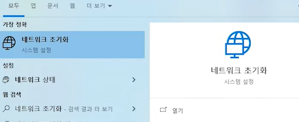 다시 컴퓨터 하단에 검색에서 네트워크 초기화를 검색후 들어가서!