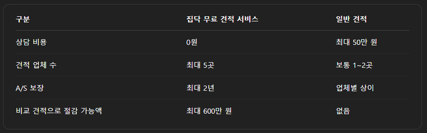 - 최대 5개 업체 견적 비교 → 평균 시공가 최대 20% 절감