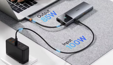 Baseus USB C 허브는 PD 충전을 지원해 최대 100W의 전력을 공급할 수 있습니다. 노트북을 사용하면서도 배터리를 걱정할 필요가 없어서 정말 편리했습니다.