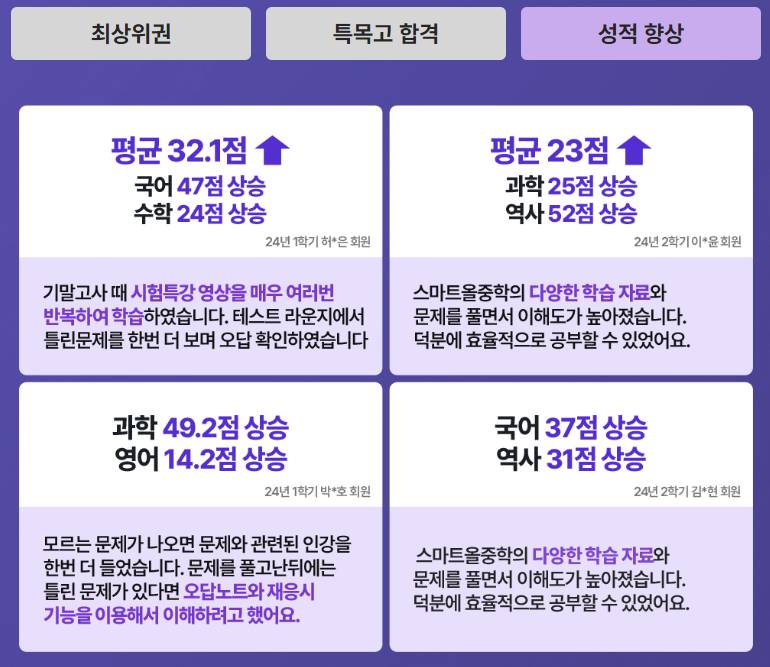 24시간 운영되는 질의응답 시스템과 1:1 전문가 담임 코칭이 성적을 책임집니다.👉 지금 신청하세요. 우리 아이의 현재 내신 취약점을 짚어주는 고수급 전문가 진단이 무료입니다.