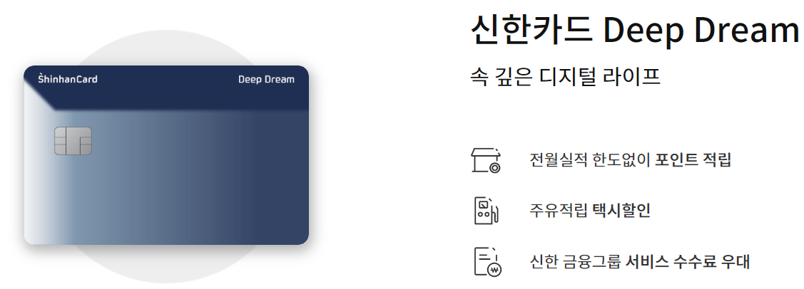 신한카드 Deep Dream은 기본 사용처부터 특별 가맹점까지 다양한 할인 혜택을 제공해요. 주유, 대중교통, 편의점, 커피 등 일상에서 자주 이용하는 곳에서 최대 3% 할인이 되며, 여기에 추가로 적립 포인트까지 적립됩니다.
